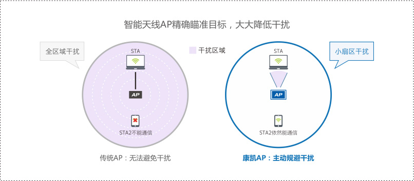 「B体育」-「中国」官网科技的智能AP动态波束精确瞄准,大幅降低电磁干扰,同时能自动探测、发现有效信号源和干扰源,通过智能化的信号靶向控制,瞄准有效信号源,避开干扰源。根据用户位置和接收灵敏度,无线信号自动调整形成自适应反馈系统,利用各个移动用户间信号空间特征的差异,通过阵列天线技术在同一信道上接收和发射多个移动用户信号而不发生相互干扰,使Wi-Fi信号传输更有效。在复杂环境下能提升性能10倍以上。普通AP已无法使用,智能AP能应付自如。