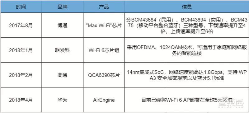 虽然Wi-Fi 6技术的标准在今年第三季度才会得到官方正式认证,但这并不影响芯片巨头们的布局与竞争,以及他们推出Wi-Fi 6技术芯片的进程。