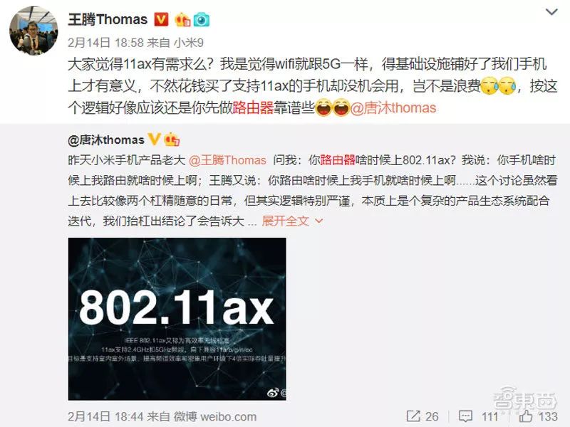 ▲小米公司产品总监王腾微博