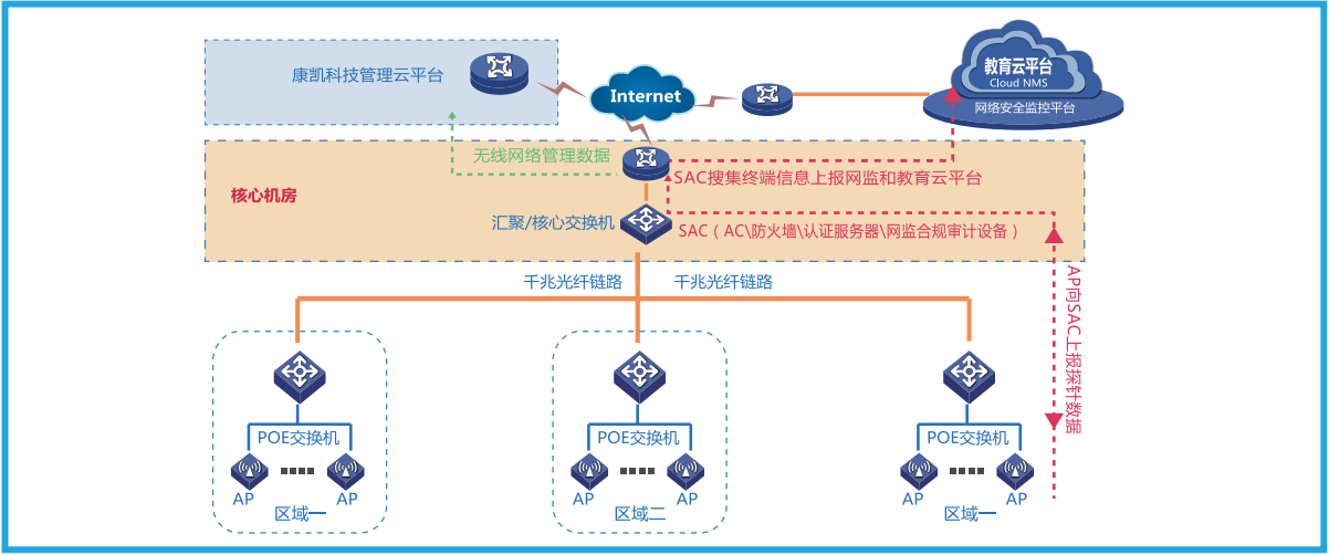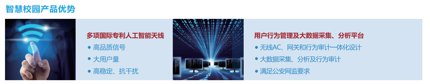 「B体育」-「中国」官网科技提供的智慧校园应用场景,包括AC、网关和行为审计一体化设计,减少投入并简化管理,同时提供学生行为管理及大数据采集功能,为学校和家长及时、精准辅导学生提供了丰富依据。