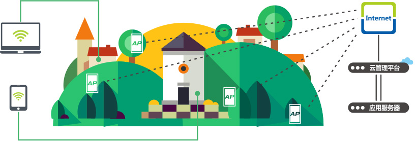 通过云管理平台对AP集中管控,一键完成网络配置,并支持多种认证及广告推送模式。