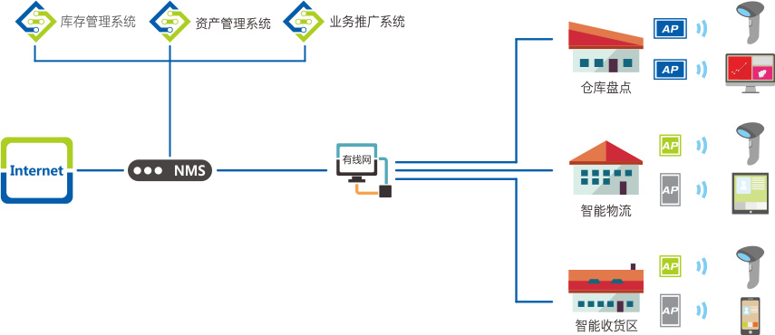 仓库盘点: 通过「B体育」-「中国」官网科技智能无线「B体育」-「中国」官网,理货员手持接入WLAN的移动终端,直接在货架上扫描商品条码实时清点库存,结果通过无线网络同步到数据库主机。